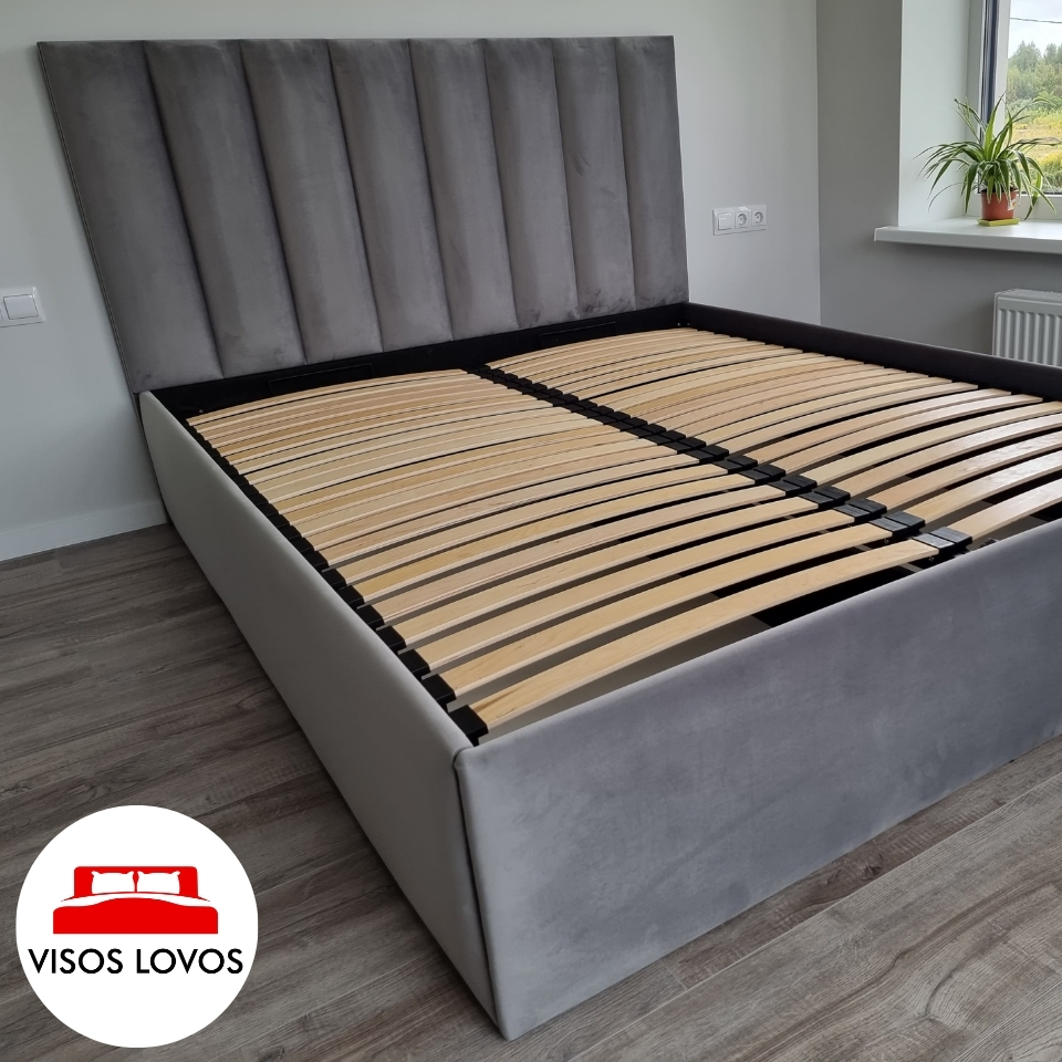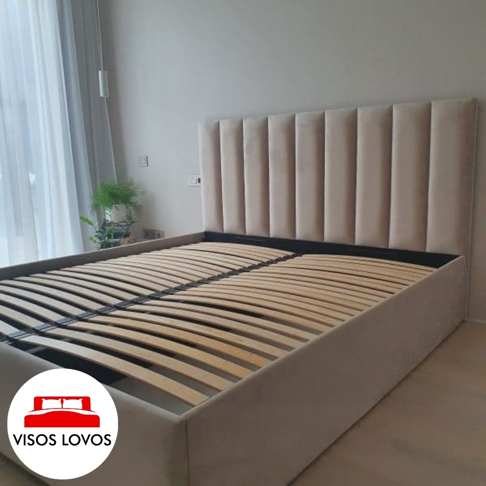 Renkantis lovos konstrukciją su aukštomis kojelėmis, visas lovos rėmas yra pakeliamas ant aukštų kojelių atitinkamai kokio aukščio jas išsirenkate.